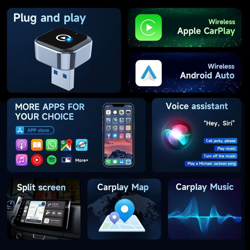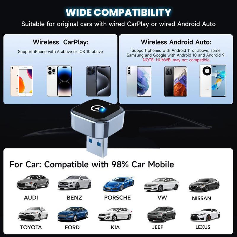 Wireless adapters have become popular because many vehicles support CarPlay or Android Auto only through a wired USB connection. A compact adapter like this bridges that gap and helps make each journey start more smoothly. Smaller dongle-style models are especially useful because they fit discreetly, reduce cable clutter, and are easy to transfer between compatible vehicles.