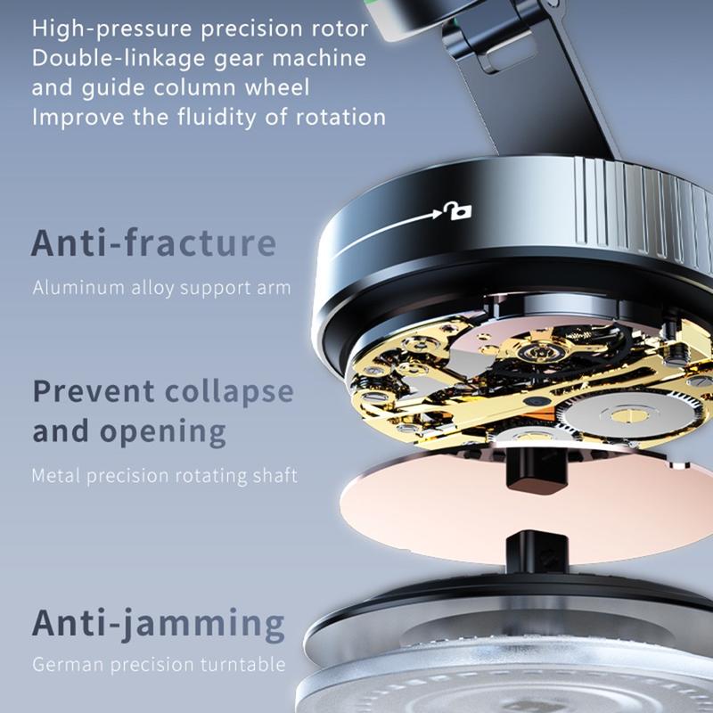 K3 Rotating Magnetic Car Holder - 15W Wireless Charging, N52 Magnets, LED Lights, 360° Adjustable, Vacuum Sucker Base for Car & Desktop