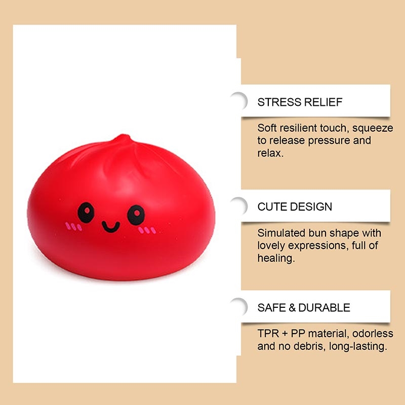 Red Steamed Bun Stress Relief Toy - Kawaii TPR Squishy Squeeze Toy for Home, Office & Study