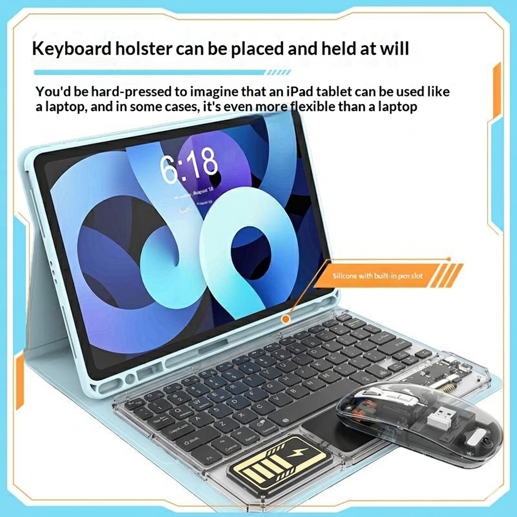 Upgrade your desk or tablet setup with the KB333 transparent Bluetooth keyboard and mouse set. Designed for work, study, and everyday use, this wireless combo combines a compact keyboard, built-in touchpad, and matching mouse in one stylish setup. The transparent design with RGB backlighting gives it a modern look, while 3-channel connectivity makes it easy to switch between multiple devices.