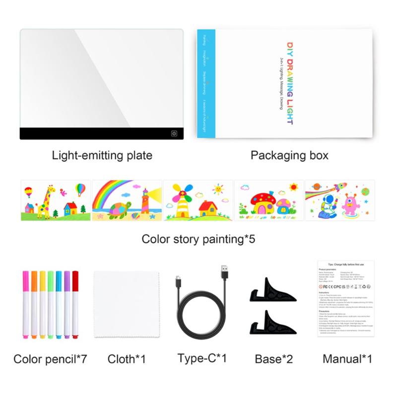 Acrylic light boards like this use edge-lit LED diffusion, where light travels through the transparent surface and illuminates drawings from below - creating glowing outlines that make even simple sketches look magical.