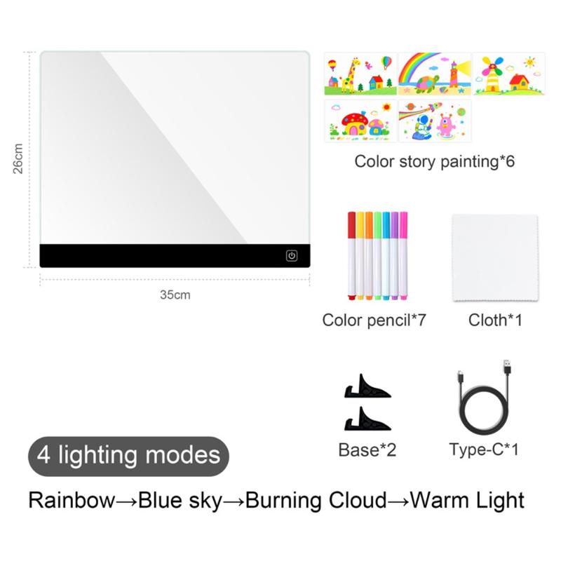 - Dynamic LED Lighting - Built with premium IC LED beads, it provides rainbow, blue sky, sunset, and warm light effects that transform your drawings into vivid, glowing artwork.