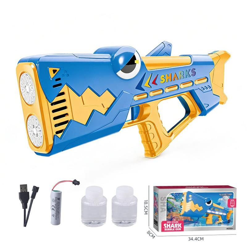 The kids shark electric bubble gun combines playful design, bright lighting effects, and a powerful bubble system to create a fun and engaging toy for children. The rechargeable battery and leak-resistant design make it convenient and easy to use for both kids and parents.
