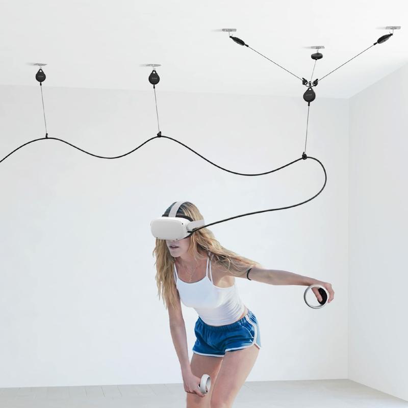 - Effortless Cable Organization: Each retractable pulley neatly suspends your VR cables from the ceiling, eliminating messy wires underfoot.