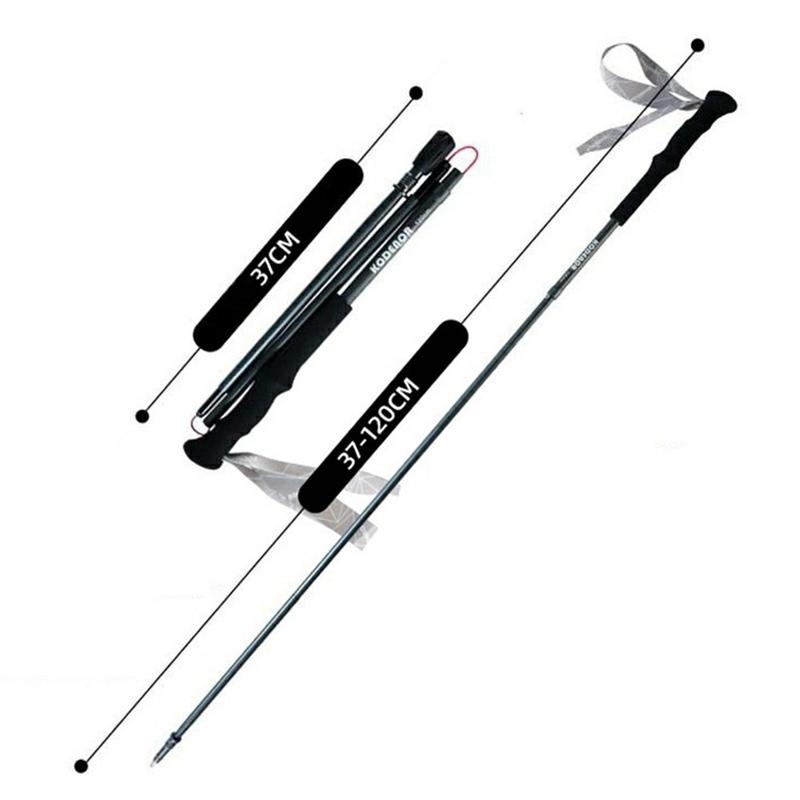 The KODENOR Foldable Trekking Pole is a lightweight and reliable companion for outdoor enthusiasts. Crafted from durable aluminum alloy and weighing just 180g, it offers stability and support without adding unnecessary weight to your gear. Its 4-section foldable design makes it easy to pack down to 37cm for effortless transport and storage. With an adjustable length of up to 120cm, this hiking stick adapts to different terrains and user heights, while the ergonomic handle provides a comfortable grip for long treks. Perfect for hiking, trekking, mountain climbing, or trail running, this trekking pole ensures balance, comfort, and performance on every adventure.