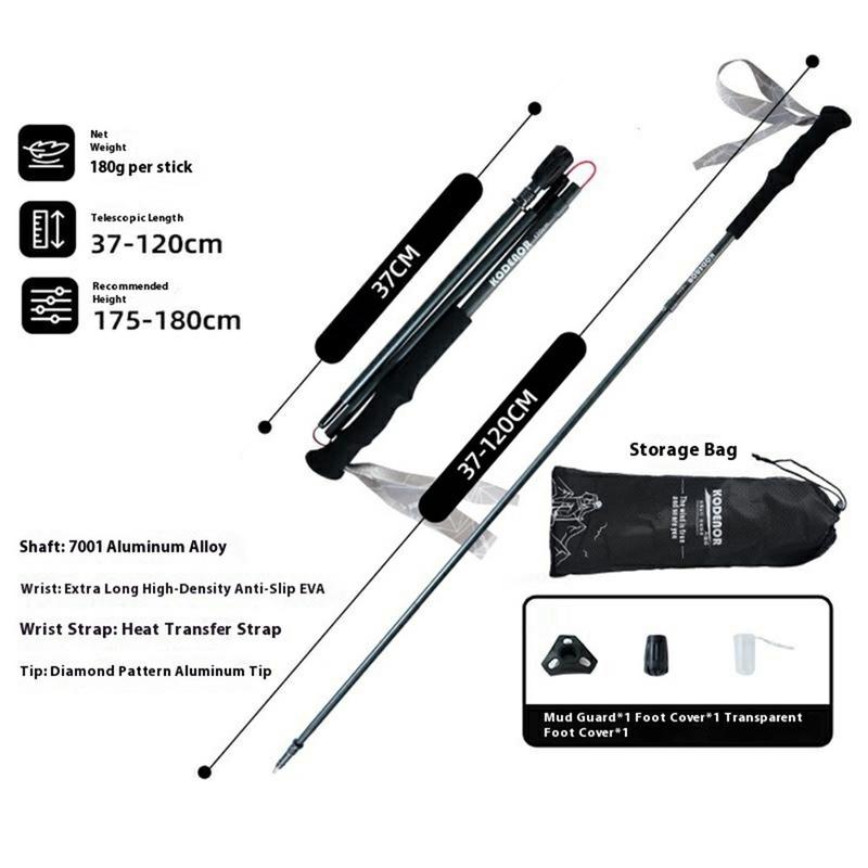 - Lightweight Aluminum Alloy – Weighs only 180g for fatigue-free carrying on long treks.