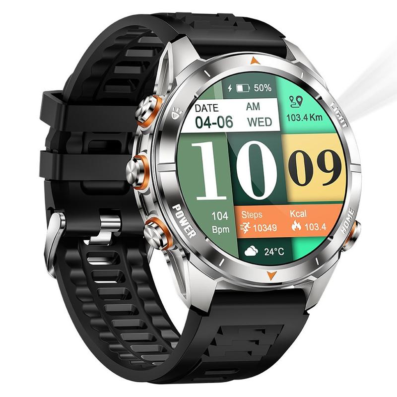 The KT80's integration of a flashlight into a smartwatch design is a nod to multifunctionality, catering to users who require quick access to light during outdoor activities or emergencies.