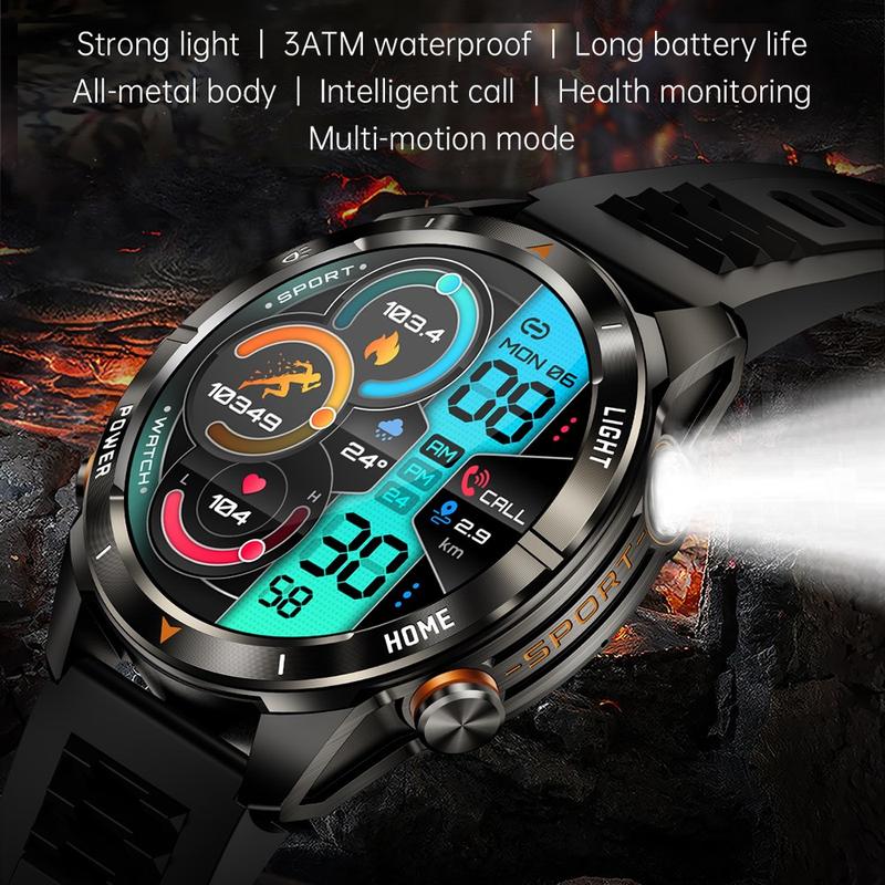 The KT80's integration of a flashlight into a smartwatch design is a nod to multifunctionality, catering to users who require quick access to light during outdoor activities or emergencies.