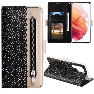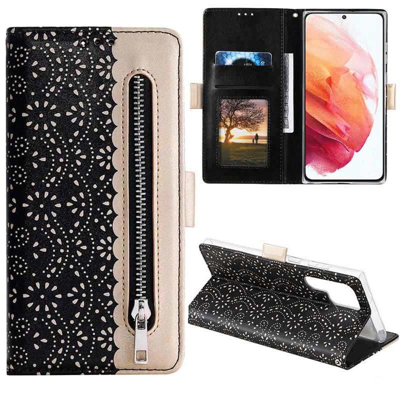 Lace Pattern Wallet Case for Samsung Galaxy S22 Ultra 5G