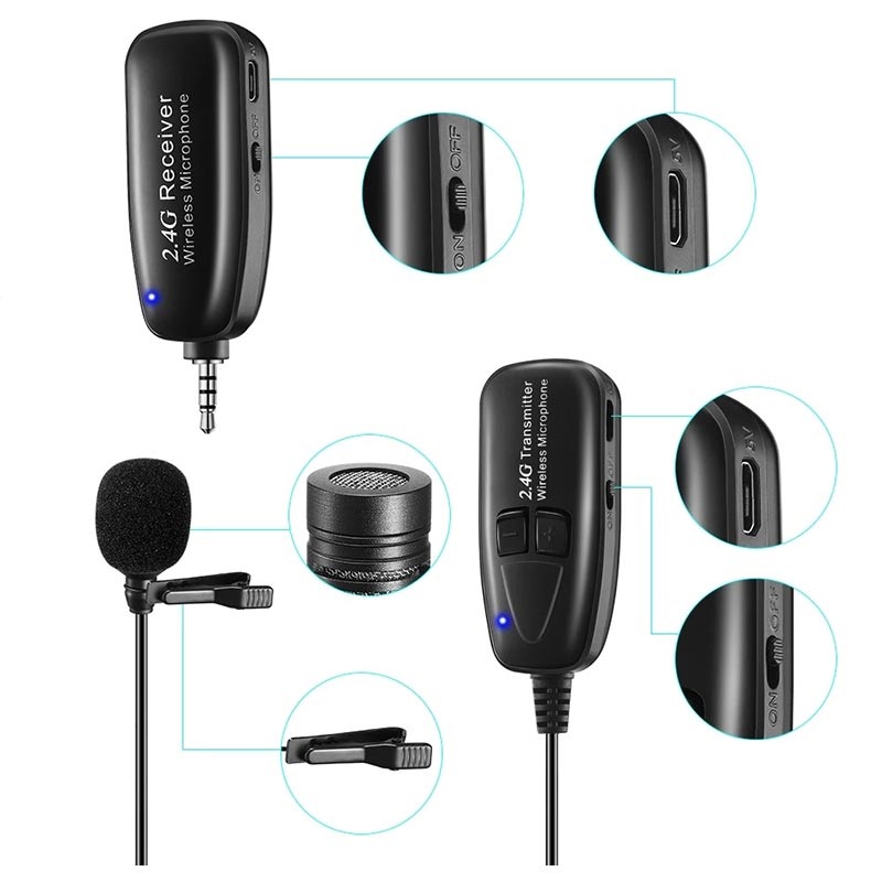 Ovaj kvalitetni Lavalier Lapel bežični mikrofon poseduje predajnik sa kondenzatorskim mikrofonom i 3.5mm / bežični prijemnik koji vam omogućuju prenos glasa na udaljenosti do 50m. Povežite bežični prijemnik sa svojim zvučnicima, bus stereo sistemom, telefonom, tabletom, PC uređajem ili bilo kojim uređajem koji poseduje 3.5mm ili 6.35mm audio ulaz.