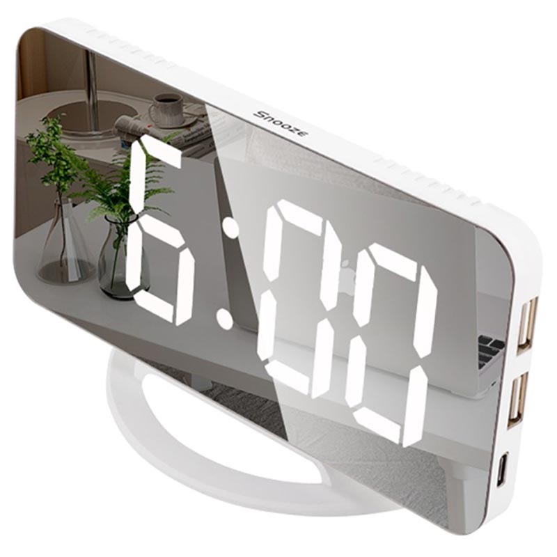 LED Budilnik sa Digitalnim Displejem, Ogledalom i Odvojivim Stalkom TS-8201 - 2x USB-A Izlaz