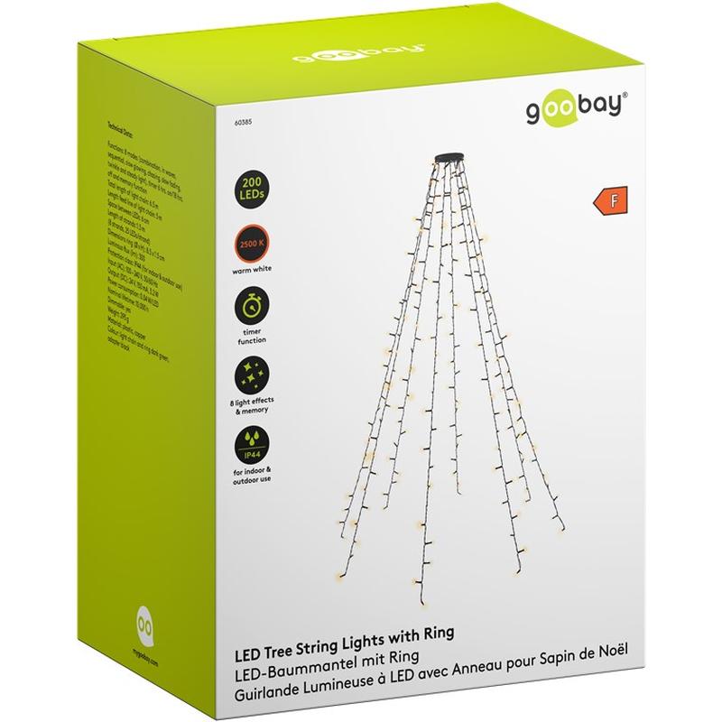 Effortlessly illuminate your holiday celebrations with the 200 LED Tree Cover with Ring – 8 x 1.5 m. Designed to fit Christmas trees ranging from 1.40 to 1.80 m, this specialized cover streamlines your decorating routine, making setup faster and easier than traditional fairy lights. Its IP44 rating ensures lasting performance both indoors and outdoors, while the dark green cable blends seamlessly into natural foliage.