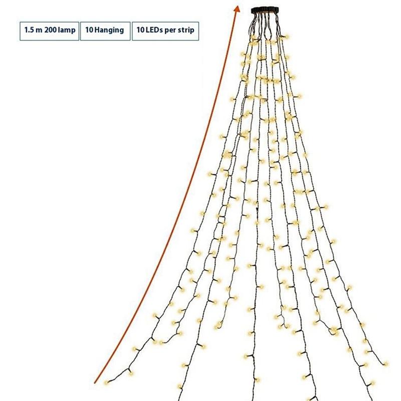 Transform your Christmas tree into a dazzling centerpiece with the 1.5m 200-Light LED Waterfall Christmas Tree Lights. Featuring 8 festive lighting modes and 200 warm white LEDs, this decoration creates a magical holiday atmosphere. Designed for ease of use, installation takes less than a minute—simply place the ring on top of your tree and let the 10 light strands cascade down. Perfect for indoor and outdoor setups, these IP44 waterproof lights are safe, durable, and bring warmth to your holiday celebrations.