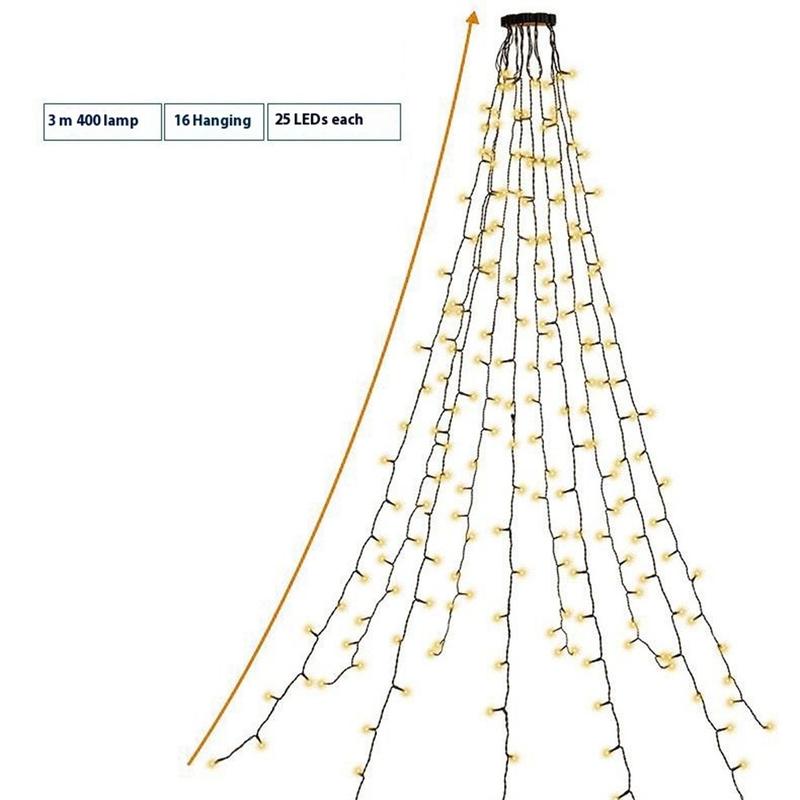 LED Light Chain for Christmas Tree with Ring - 400 LED, EU Plug, 3m