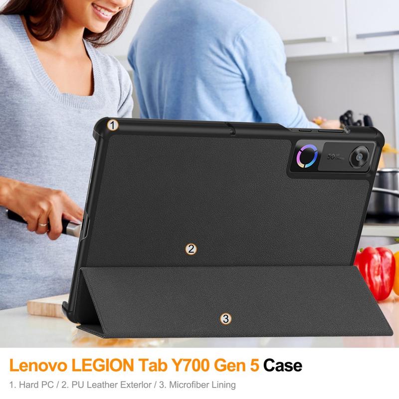 Elevate your tablet experience with this premium leather stand case, designed specifically for Lenovo Legion Y700 (Gen 5). Crafted to fit the newest Lenovo Legion Y700 (Gen 5) seamlessly, this shock-absorbent cover ensures superior protection while offering a convenient pen slot for your stylus. Whether you work remotely, attend classes, or simply enjoy leisure browsing, our lightweight and durable tablet cover keeps your device safeguarded in style.