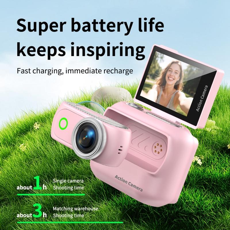 Built for flexibility, this mini sports camera supports multiple shooting modes including video, photo, slow motion, time-lapse, and ND mirror effects, making it suitable for both casual recording and more creative content. Its portable design allows you to mount it on a neck lanyard, hat, helmet, bicycle handlebar, or other compatible surfaces, while the extended battery support helps keep you filming longer when you are on the move.