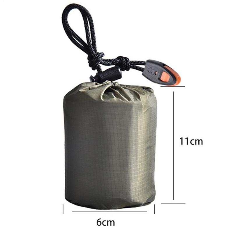 The Luckstone First Aid Emergency Sleeping Bag is a must-have for outdoor enthusiasts. This portable survival gear is designed to keep you warm and safe in low temperature environments. Made of PE aluminum film, it can easily retain heat and can also be used as a picnic mat. The bright color of the bag makes it easier for rescuers to spot you in case of an emergency. For added thermal insulation, you can include a first aid blanket (not included) to ensure a comfortable sleeping temperature. When not in use, the bag can be folded to palm size for easy storage and transportation. Whether you're going on a camping trip, hiking, or facing a disaster, this sleeping bag is suitable for all your outdoor needs.