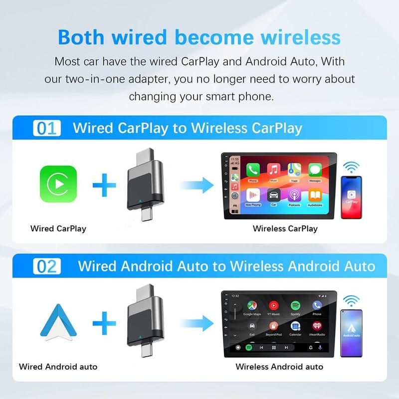 - Functions: Wireless CarPlay & Android Auto (2-in-1)