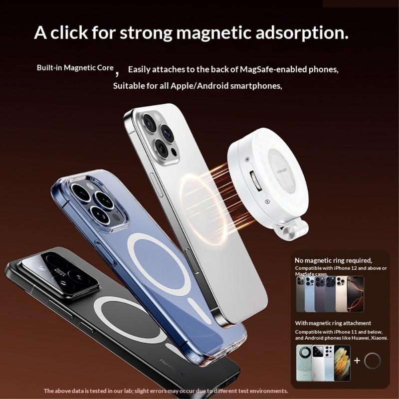- Compact LED fill lights help smartphone cameras reduce noise in low-light situations, resulting in clearer photos.