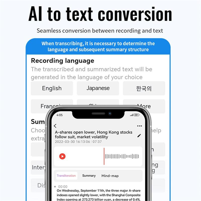 - AI-Powered Transcription & Translation: Connects via Bluetooth to the AIREC-APP for real-time transcription and translation in 59 languages.