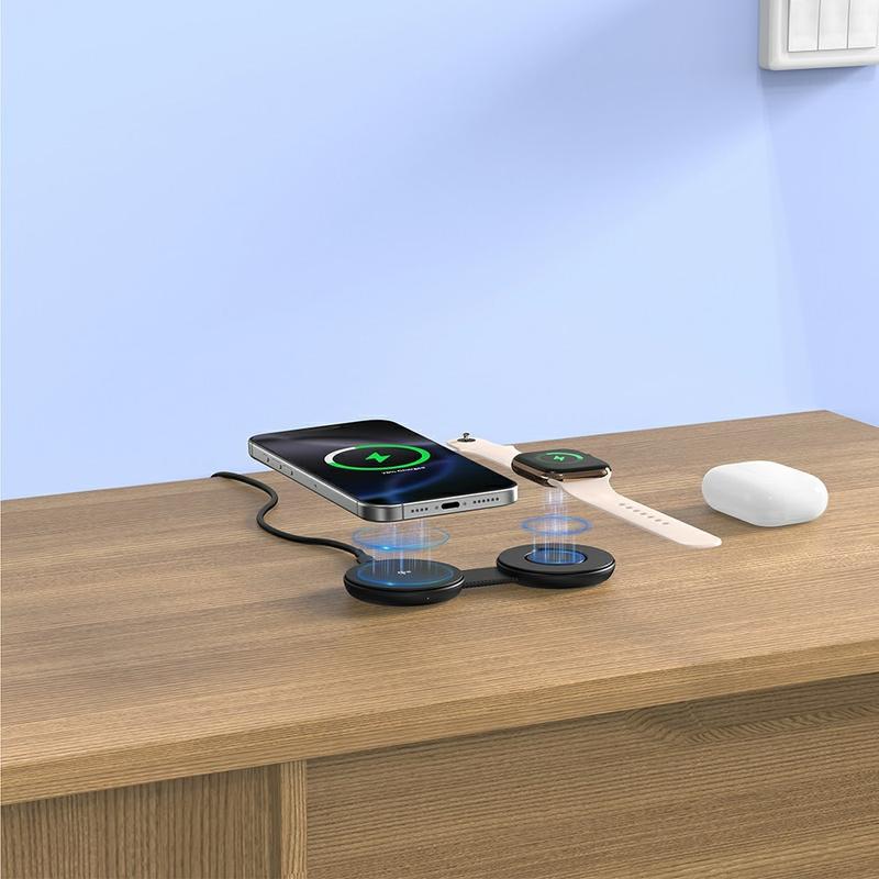 Supports magnetic iPhones, MagSafe cases, Apple Watch, and most Qi-compatible earbuds. A single portable charger that simplifies your multi-device charging needs.