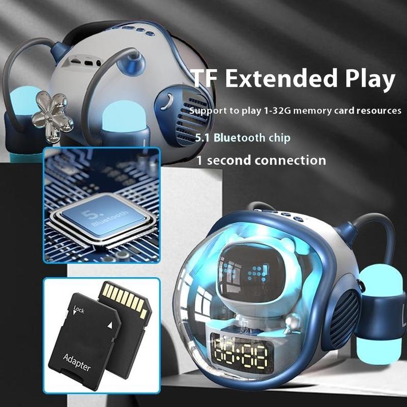 The M60 Spaceship Shape AI Bluetooth Speaker with Alarm Clock is a perfect blend of futuristic design, smart features, and high-quality sound, making it an essential addition to any modern lifestyle.