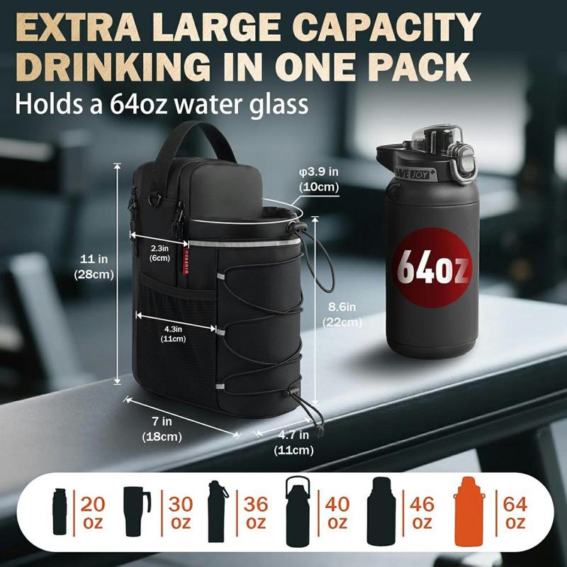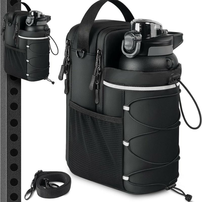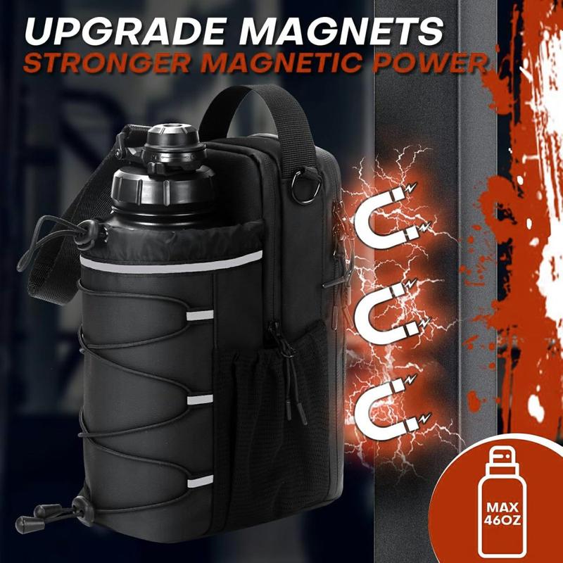 Hands-free hydration meets sleek urban style: this waterproof PU-polyester sling packs powerful magnets that lock a 1.9 L / 3 kg bottle to metal gym equipment—or your fridge—while zip pockets keep phone, keys and cards spotless.