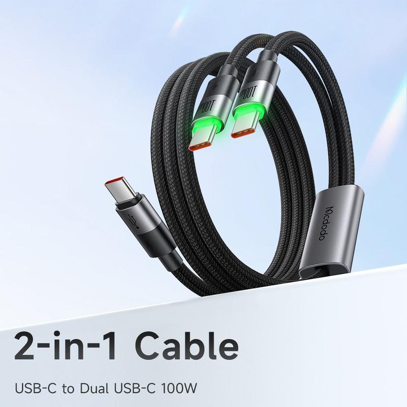Mcdodo CA-6740 2-in-1 USB-C Cable with 100W Fast Charging, LED Light - 1.5m
