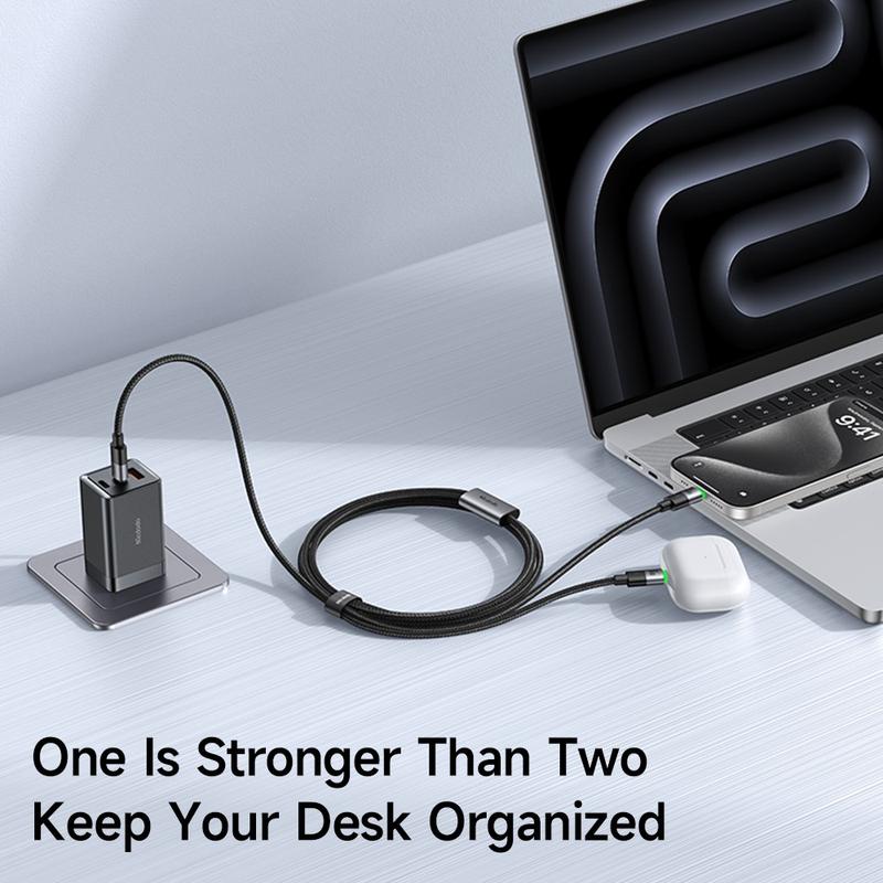 One cable that does the work of two means less clutter, fewer forgotten accessories and lower e-waste. Its beefy 100W rating future-proofs your setup against next-gen laptops, while the smart split keeps today’s gadgets safe. Factor in the rugged braid and you’re looking at years of reliable service—no cheap replacements needed.