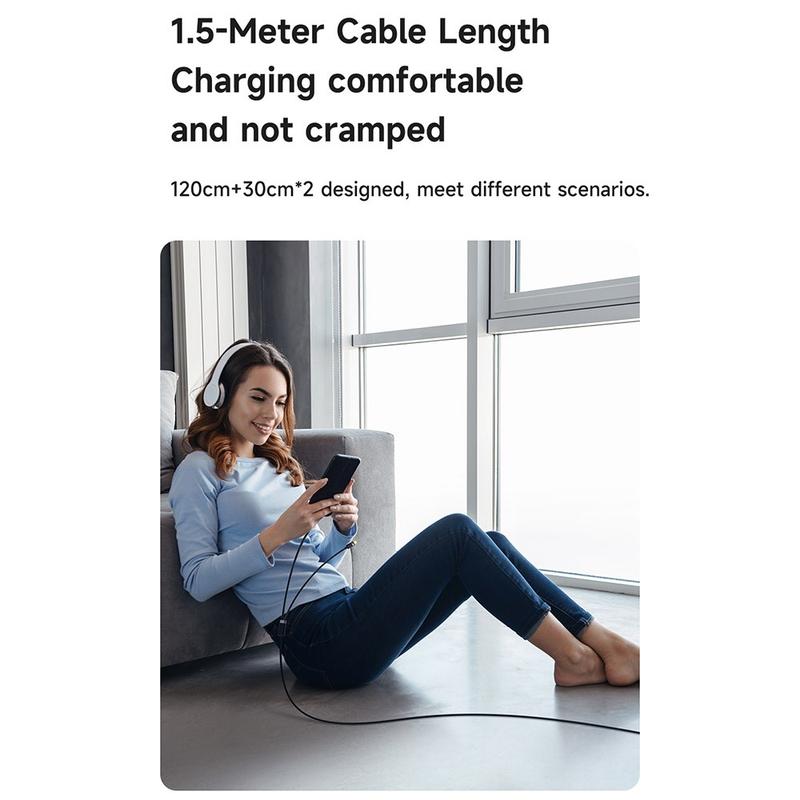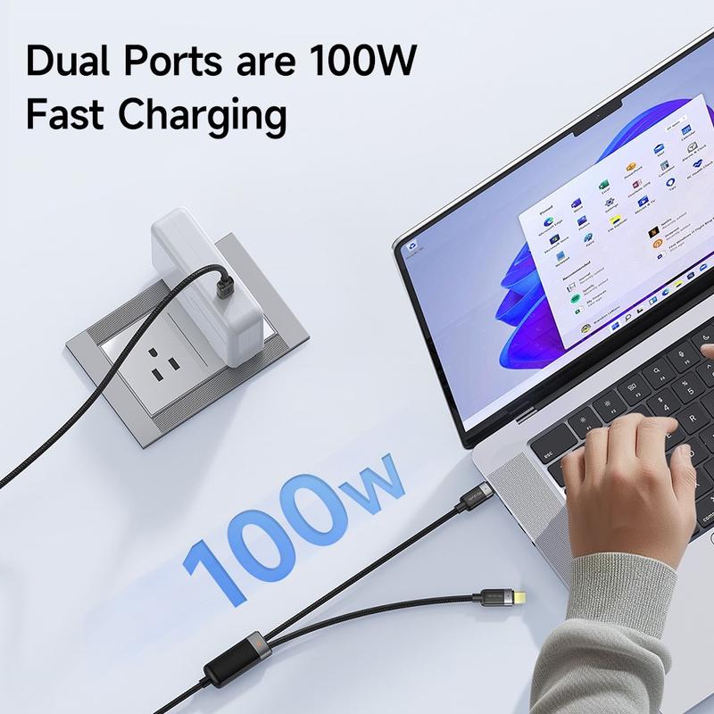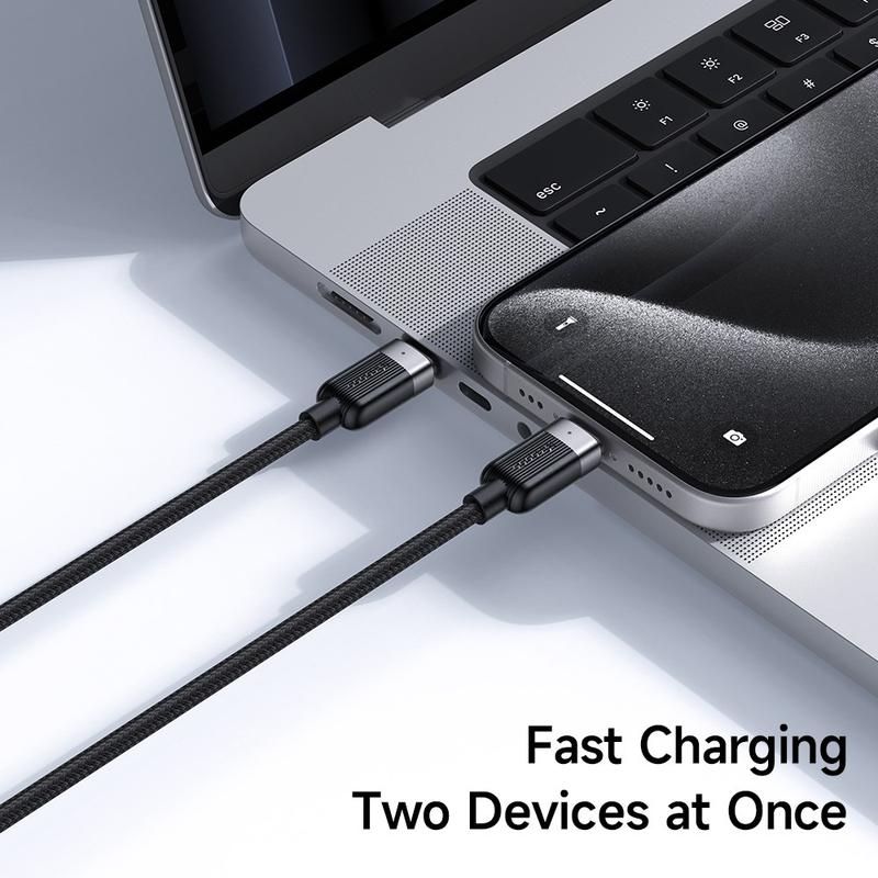 Tired of juggling separate leads for your laptop and phone? This dual-headed MCDODO cable streamlines life on the go. Two USB-C connectors branch from a single, rugged braided jacket, giving you the freedom to fast-charge two devices or drive one powerhouse at the full 100 W spec—no adapters, no fuss.