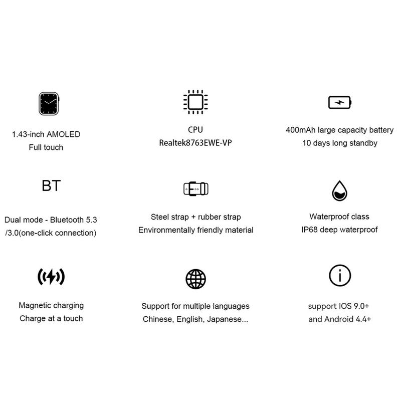1.43-inch large screen with AMOLED high-definition resolution; 466 * 466