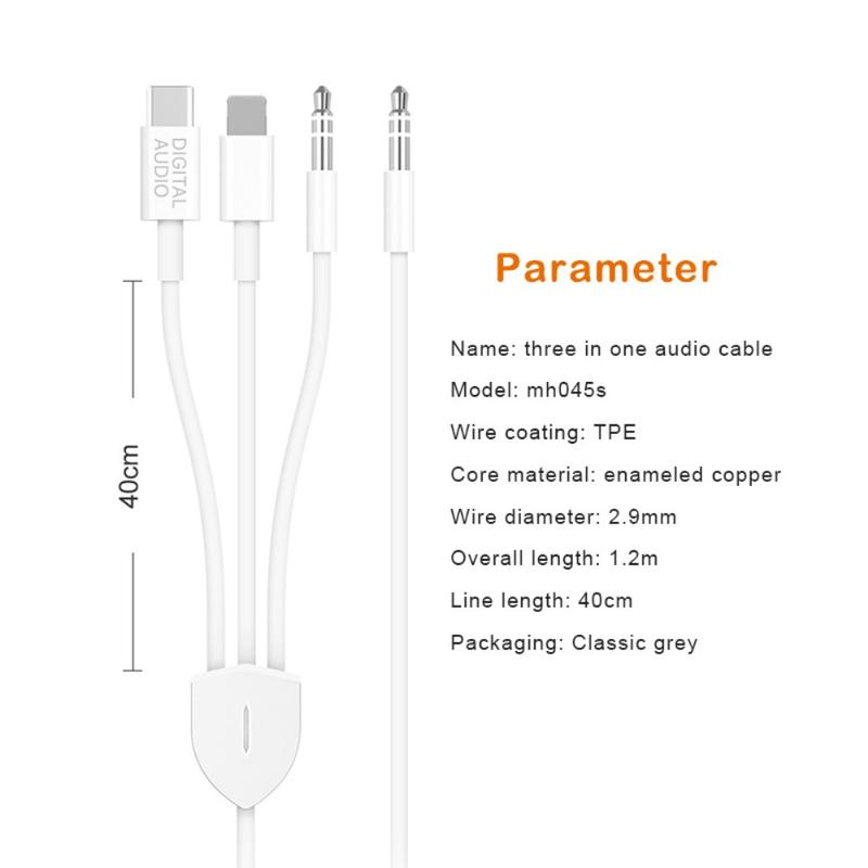 MH045S 3-in-1 Car Audio Cable - USB-C, Lightning, 3.5mm - Universal Stereo Adapter for Smartphones & Tablets