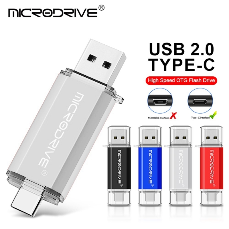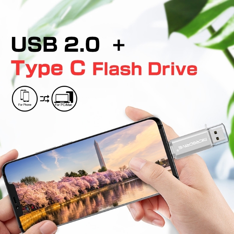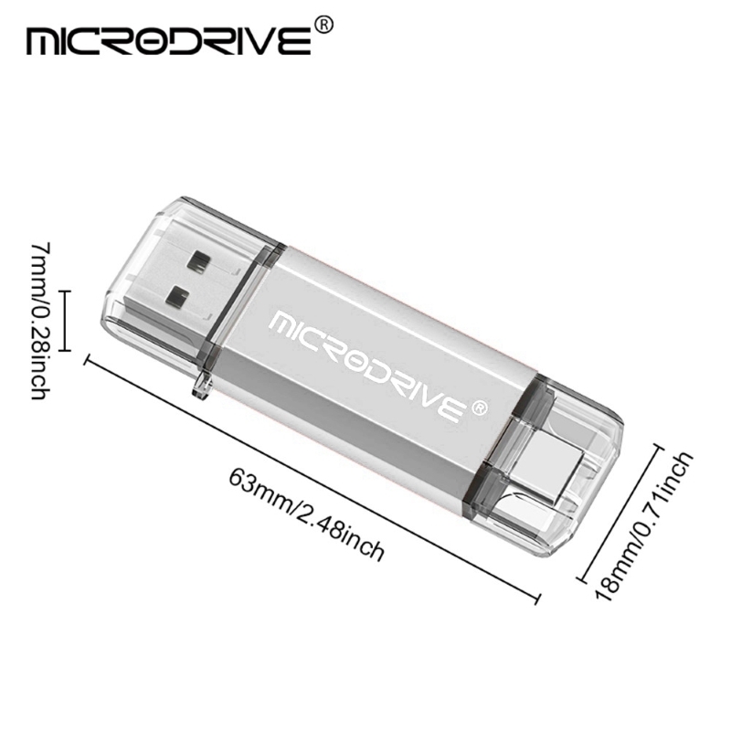 • MICRODRIVE 64GB 2-in-1 USB 2.0 / USB-C Flash Drive - Versatile Data Storage for Phones, Laptops & More