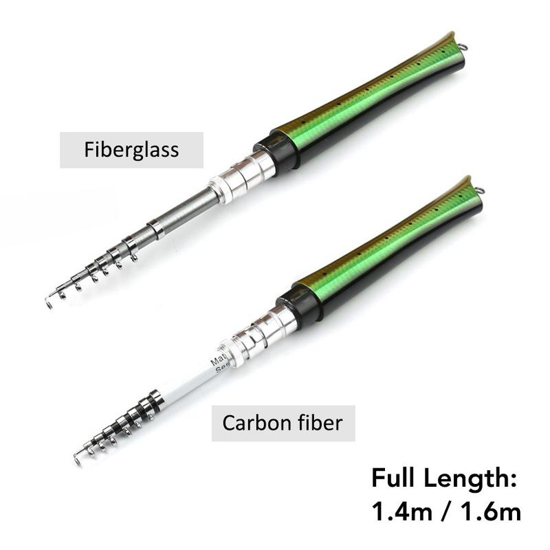 Experience the fun of fishing anytime, anywhere with this Fiberglass & Carbon Mini Pen Fishing Rod. Designed for maximum portability and convenience, it combines a retractable 1.4 m rod, a compact spinning reel, and fishing line—all in one compact kit. Whether you’re fishing from a boat, a dam, or even on ice, this miniature rod set delivers reliable performance, thanks to its sturdy aluminum alloy, fiberglass, and carbon construction.