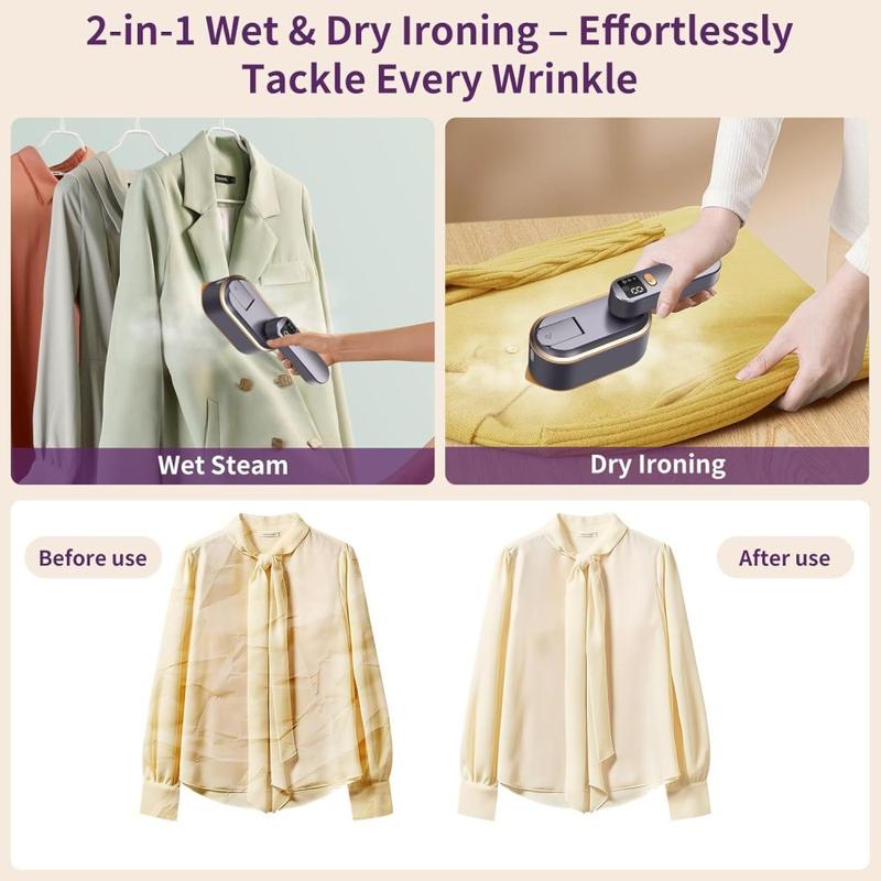 Swap bulky ironing boards for wrinkle-free results in minutes. This compact handheld garment steamer toggles between hanging and flat-iron modes, delivers precision steam through an intelligent LED screen, and packs easily for business trips or weekend getaways.