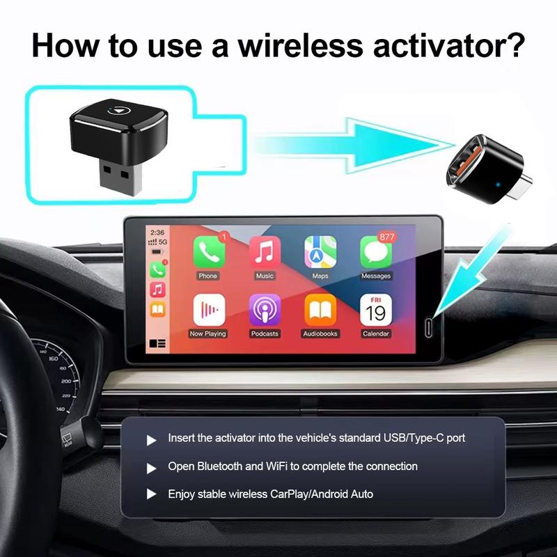- Function: Converts wired CarPlay/Android Auto to wireless