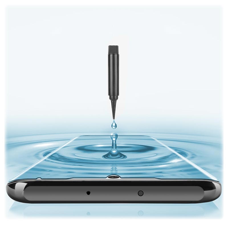- 5. korak: Pažljivo nanesite kaljeno staklo i sačekajte da se UV lepak u potpunosti raširi bez dodatnog pritiska na zaštitno staklo