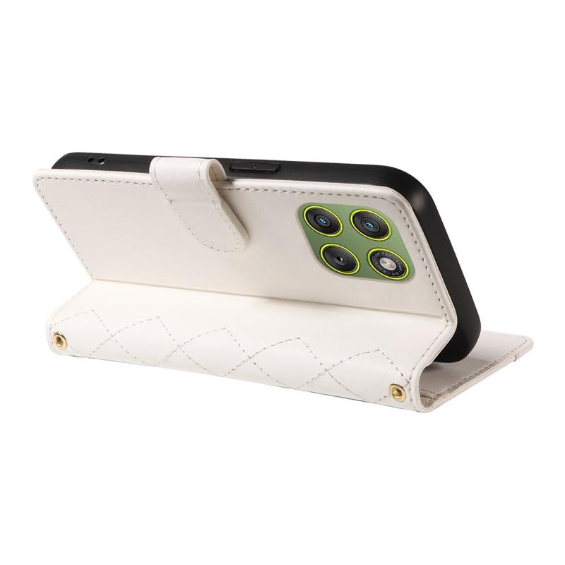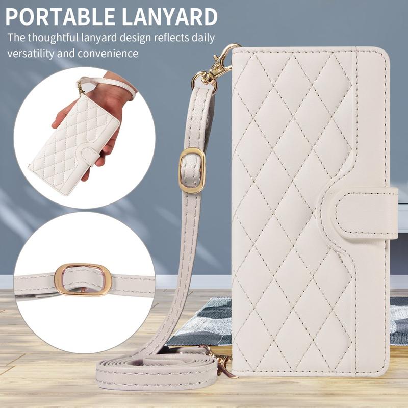 Luxury Quilted Wallet Case with Shoulder & Wrist Strap for Motorola Edge 70 - Rhombus Pattern Protective Cover