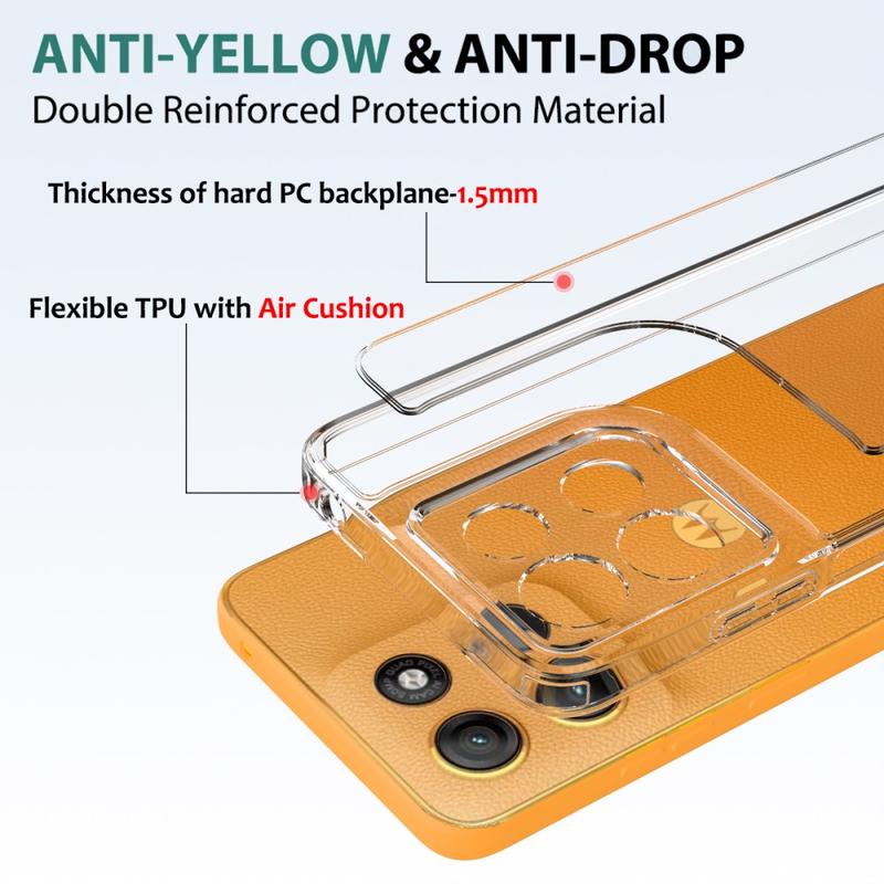 Ovaj dodatak predstavlja kombinaciju akrila i TPU materijala koji će sačuvati Vaš telefon u besprekornom stanju. Uz to, ojačane ivice apsorbuju udarce i eliminišu štetu prilikom padova, dok providni dizajn pokazuje lepote Vašeg Motorola Moto G17 Power, Moto G17, Moto G15 telefona u punom sjaju.
