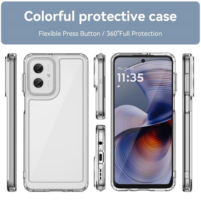 Kvalitetna Anti-Shock hibridna providna maska za Motorola Moto G55 štiti poleđinu i bočne stranice uređaja od svakodnevnih udaraca i ogrebotina. Ova maska je savršeno oblikovana tako da prati linije Motorola Moto G55 uređaja, dok providna poleđina omogućuje da originalna lepota vašeg uređaja ostane vidljiva.