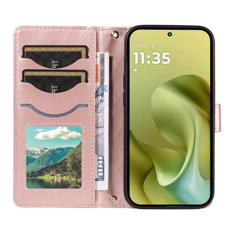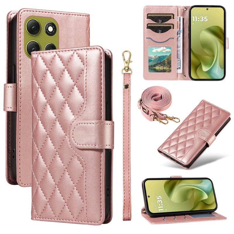 Protect your Motorola Moto G86 with this luxurious quilted wallet case. Constructed with TPU material coated with PU leather, this case is scratch-resistant and anti-fingerprint, keeping your phone looking stylish and sleek. The stitching line forms a rhombus grid pattern, adding a fashionable and beautiful touch to the case. The raised edge of the camera and screen offers effective protection against scratches, while the precise cutouts provide full access to all buttons, ports, and other features. The wallet design allows for easy storage of essential cards and cash, and the included suction cups can be used as a supporting stand for hands-free use. With added protection against scratches, impact, drops, and daily damage, this case also comes with a shoulder strap and wrist strap for added convenience.
