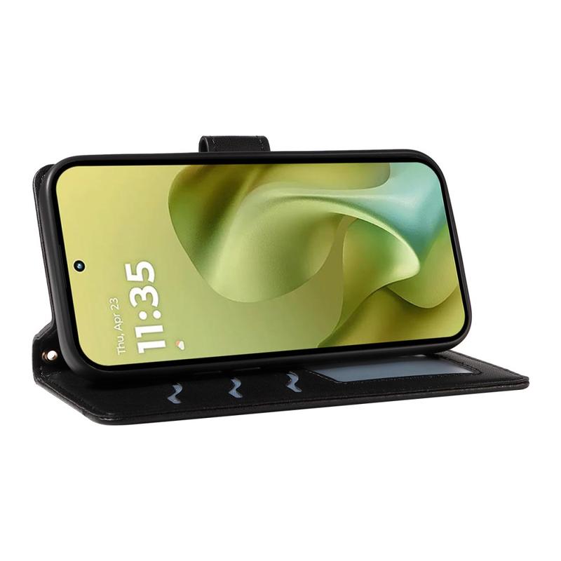 Protect your Motorola Moto G86 with this luxurious quilted wallet case. Constructed with TPU material coated with PU leather, this case is scratch-resistant and anti-fingerprint, keeping your phone looking stylish and sleek. The stitching line forms a rhombus grid pattern, adding a fashionable and beautiful touch to the case. The raised edge of the camera and screen offers effective protection against scratches, while the precise cutouts provide full access to all buttons, ports, and other features. The wallet design allows for easy storage of essential cards and cash, and the included suction cups can be used as a supporting stand for hands-free use. With added protection against scratches, impact, drops, and daily damage, this case also comes with a shoulder strap and wrist strap for added convenience.