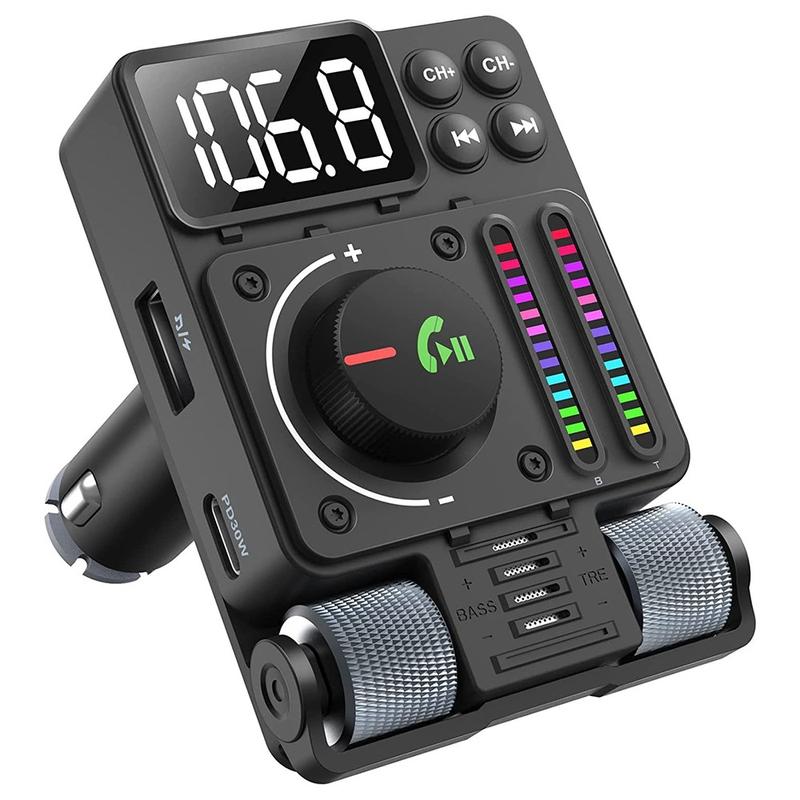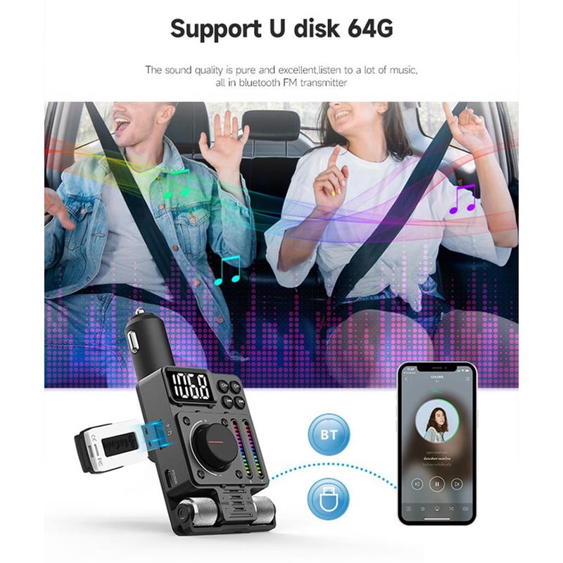 MT01 Ambient Light Car Bluetooth Adapter FM Transmitter MP3 Music Player Type-C + USB Car Charger