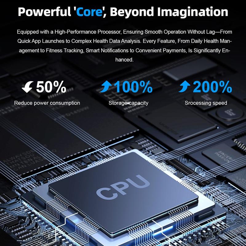 - Complete health suite: heart rate (HX3918 sensor), blood pressure, SpO₂, sleep, steps and calories