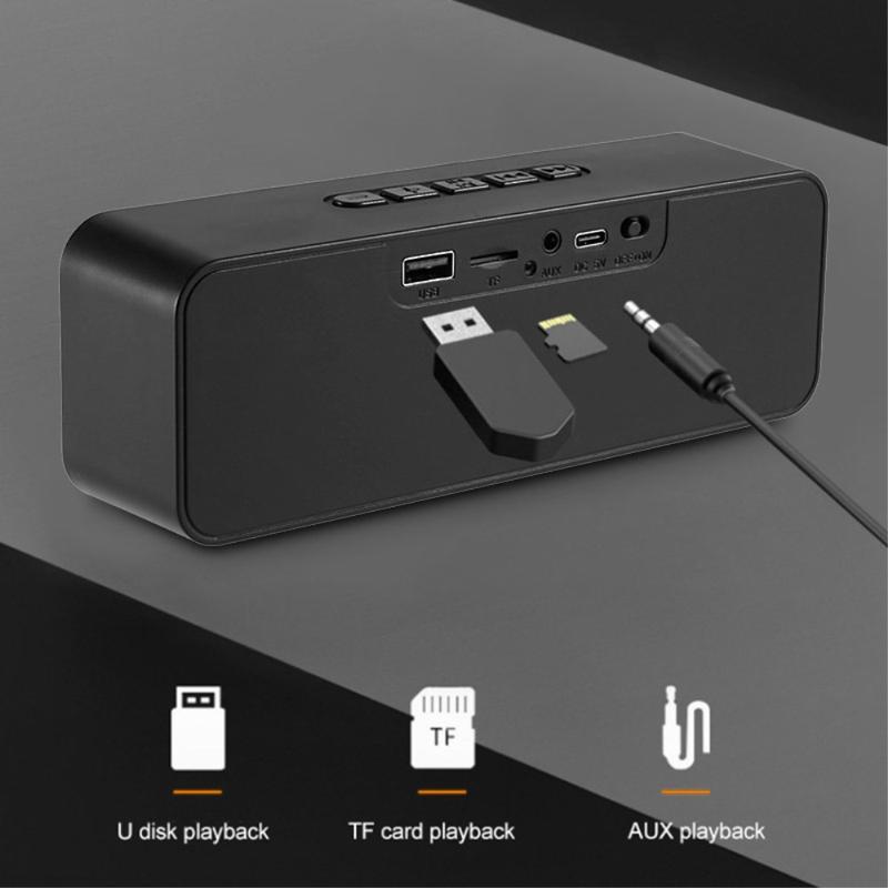 - Playback Options: Bluetooth, TF Card, U-Disk, AUX, FM Radio