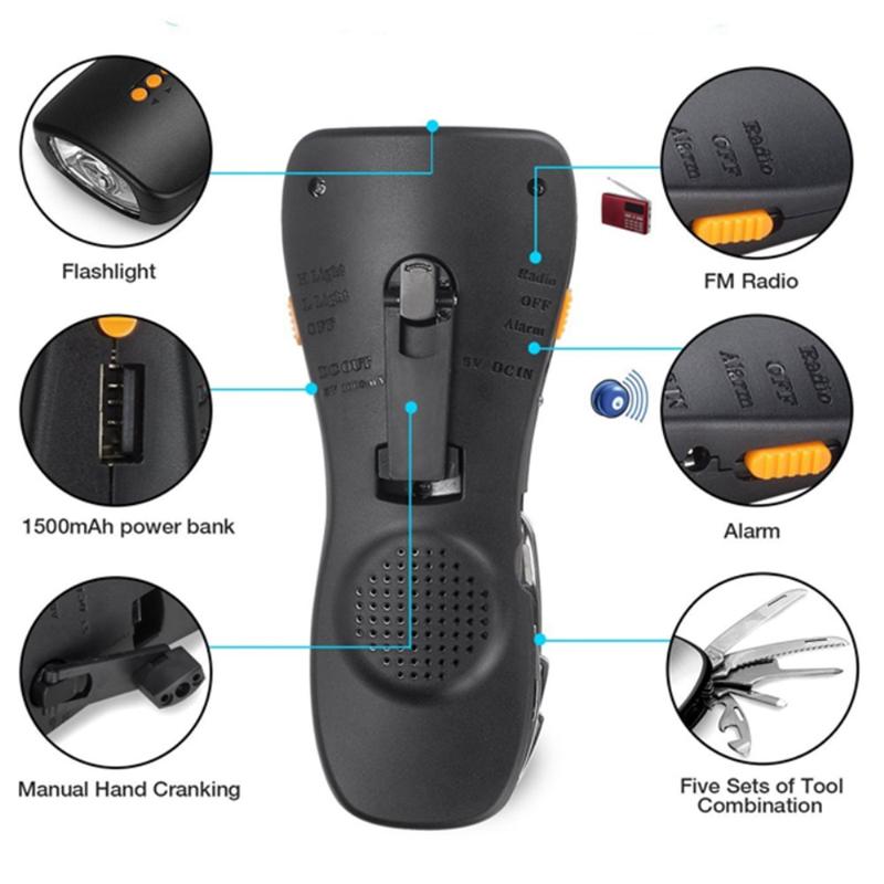 Multifunctional Hand Crank Flashlight with FM Radio, 5-Piece Emergency Tool Set