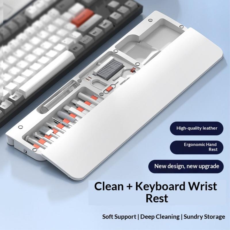 Multifunctional Keyboard Wrist Rest Pad with 22-Pack Cleaning Kit and Phone Holder