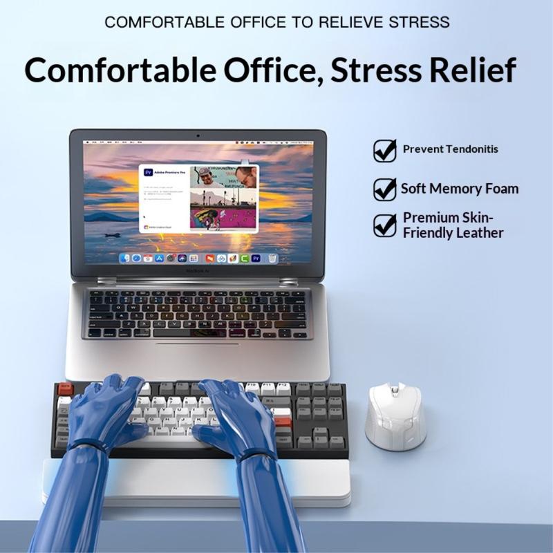 The wrist rest is crafted with soft polyrethane and high-quality foam padding to provide gentle, stable wrist support. Its ergonomic design helps reduce pressure and fatigue during prolonged typing, office work or study sessions.