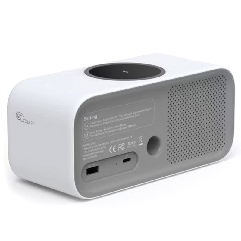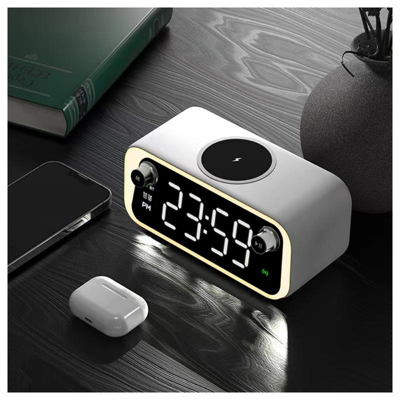 Multifunkcionalni Bluetooth Zvučnik / Bežični Punjač sa Budilnikom i Noćnim Svetlom - FM radio, QC, PD - 15W