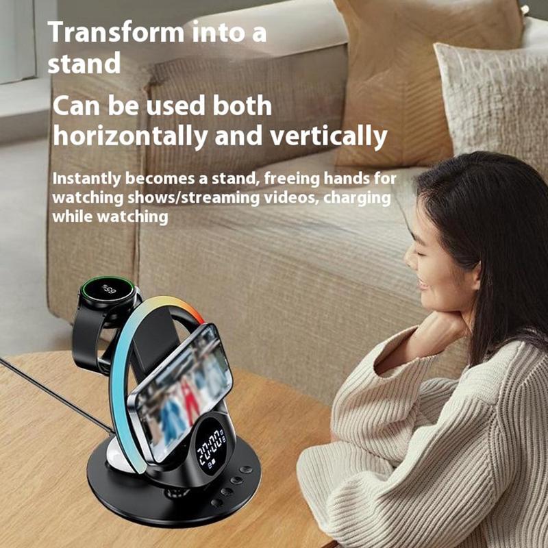Power up all your essential devices with the N01 6-in-1 wireless charging station, the ultimate all-in-one charging hub for smartphones, smartwatches, and earbuds. Designed for both Apple and Samsung users, it combines functionality, style, and safety in one compact station - perfect for desks, nightstands, or offices.